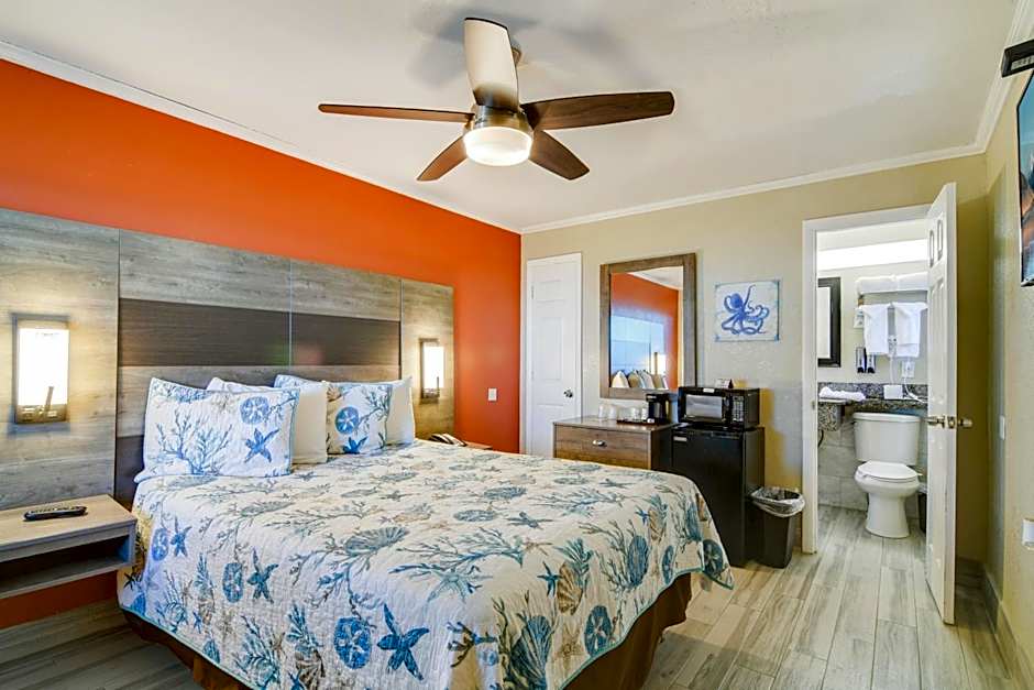 This spacious suite features a fully equipped kitchen, ocean view, and separate seating area.
